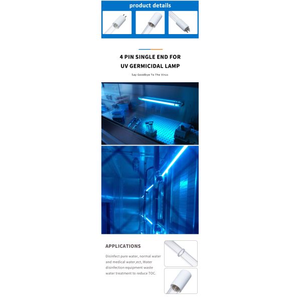 | 4 PIN Single End | Applications: Disinfect pure water, normal water and medical water,ect, Water disinfection equipment waste water treatment to reduce TOC. |